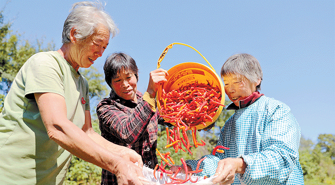 9月25日,村民在王屋镇谭庄村辣椒基地采收辣椒。