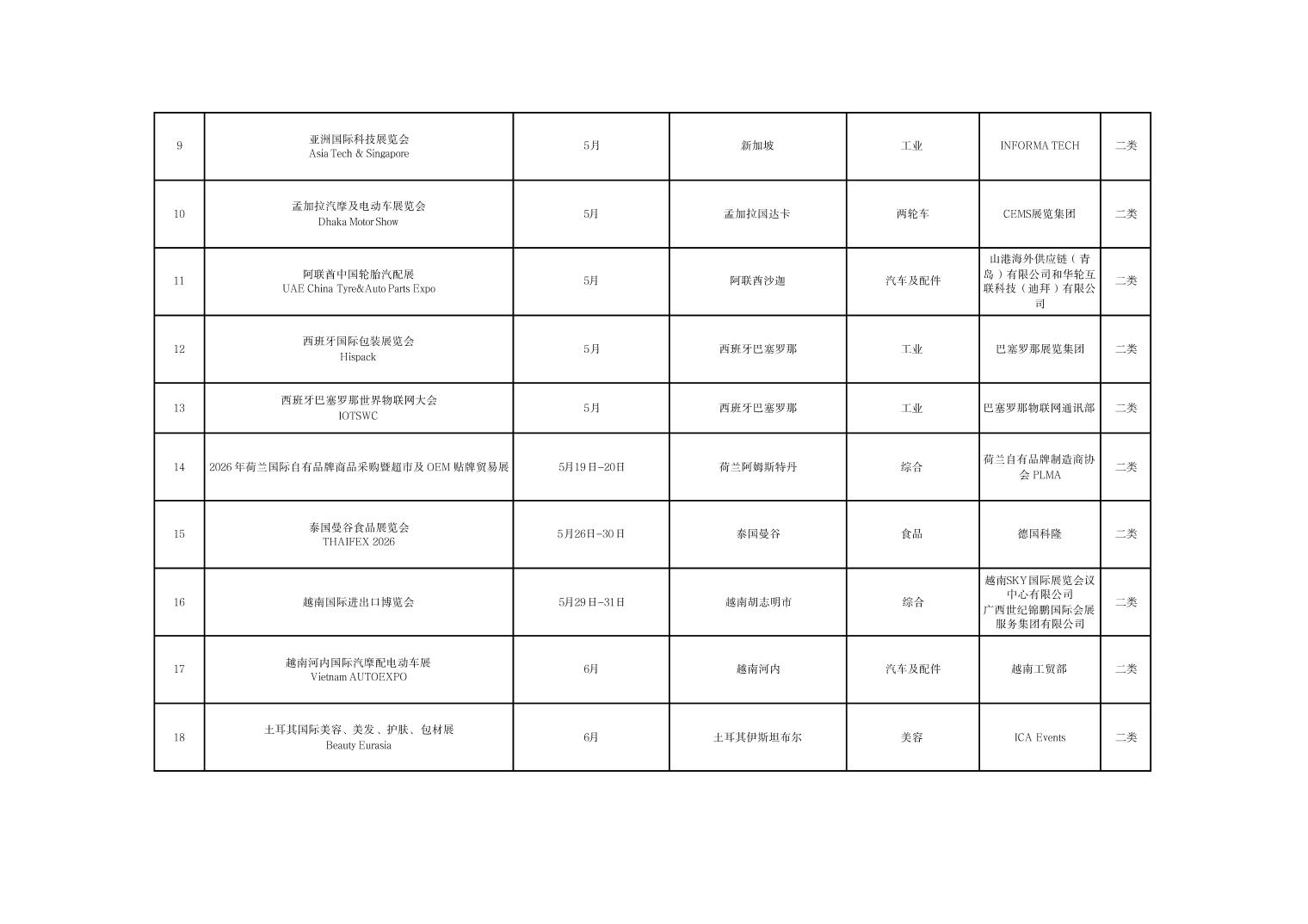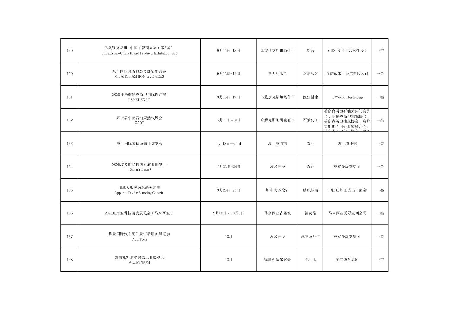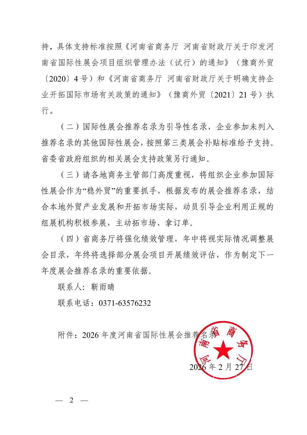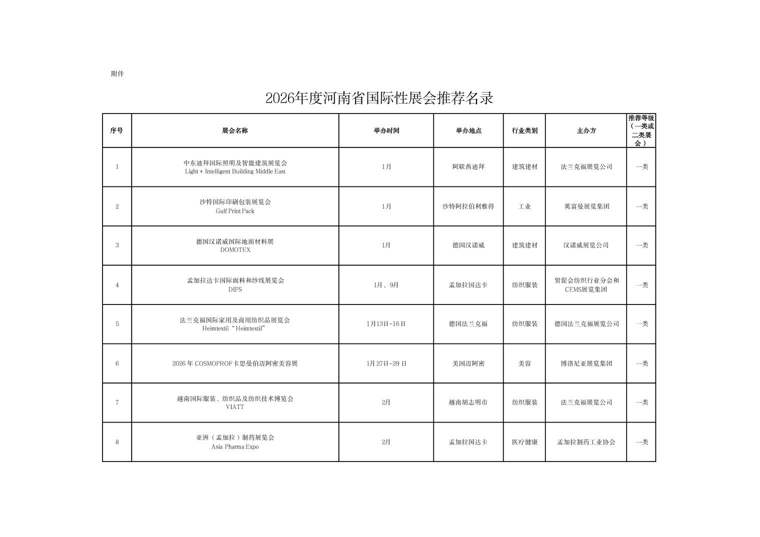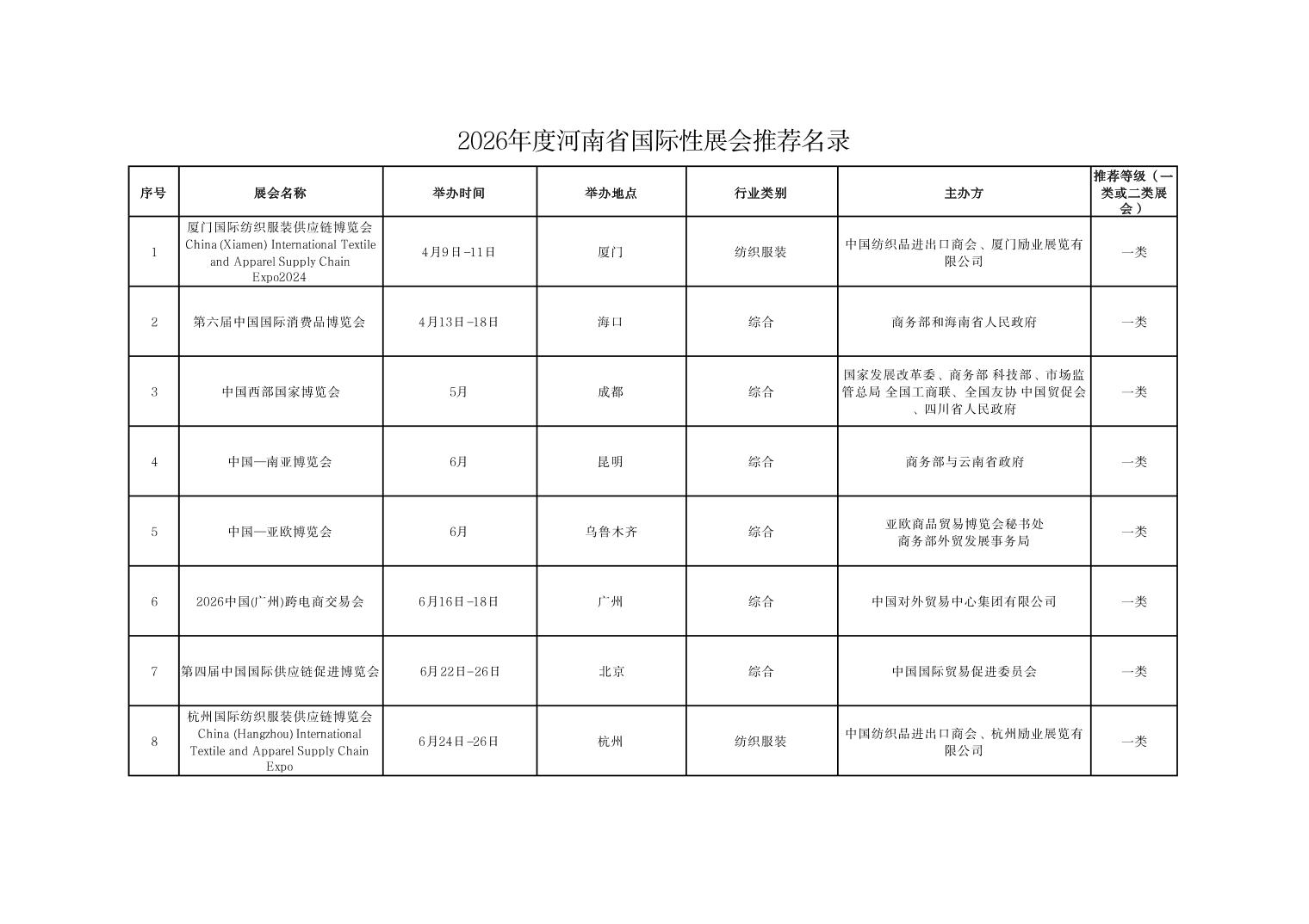 河南省商务厅关于公布2026年度国际性展会推荐名录的通知