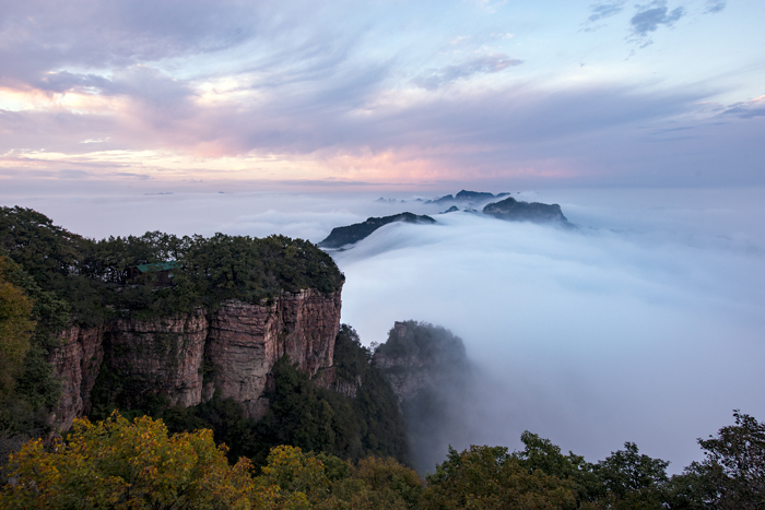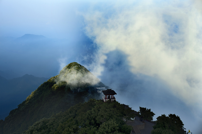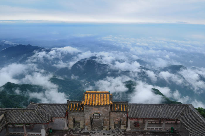 王屋山“以其山形若王者之屋”而得名,衔晋接冀,脉承京师,为中国古代九大名山之一,主峰天坛山,海拔1715米。据文献记载:轩辕黄帝于元年正月甲子登天王屋山设坛祭天,大战蚩尤,一统华夏,从此开创了我国5000年的文明史,天下太平,海内安然。黄帝在此拜广成子为师,得道成仙。以后每年的八月十五,四方善士云集于此,道教鼻祖老子李耳以及仙人王子晋、著名方士于吉、南岳夫人魏华存、道教理论家葛洪都曾在此问道,奠定了王屋山在我国道教十大洞天中的宗首地位,被称为“天下第一洞天”。唐代,这里相继建成了紫微宫、阳台宫、总仙宫、清虚宫、十方院、灵都观等规模宏大的道教建筑,可以说是三里一宫、五里一殿。从此,王屋山宫观林立,高道如云,香客如流,成为全国道教活动中心。