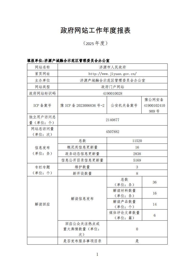 济源市人民政府网站2025年工作年度报表