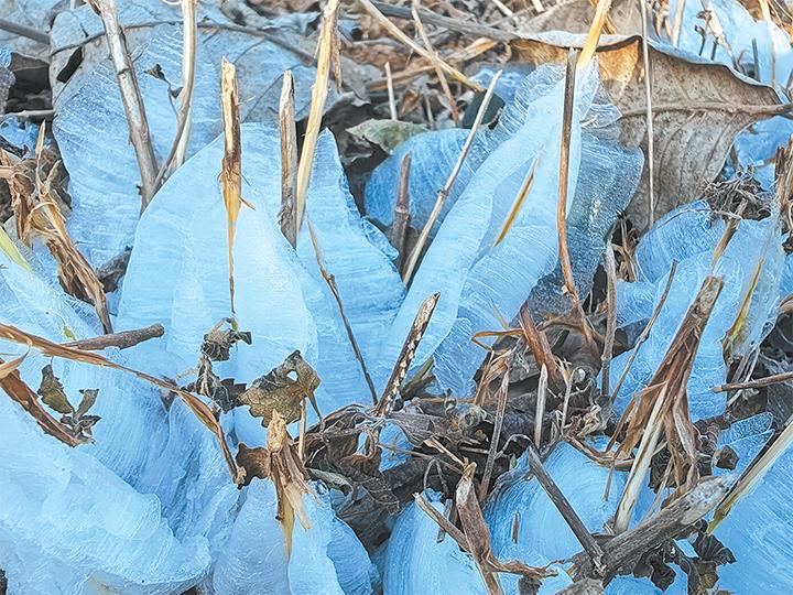 11月28日,在下冶镇下韩旺村冬凌草种植基地,冬凌草遇冷结出神奇的“冰凌花”。这些“冰凌花”形态万千、晶莹剔透,在阳光的照耀下银光闪闪,蔚为壮观。
