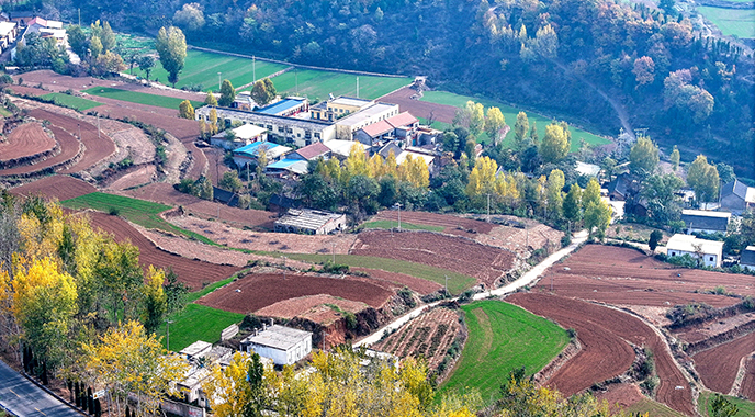11月9日,王屋山区美景如画。 初冬时节,王屋山区晨雾中的村庄与田野、道路、树木、山峦等相映成趣,呈现出一幅乡村生态画卷。