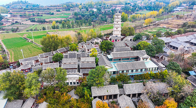 初冬时节,王屋老街的建筑和田园风光交相映衬,构成一幅色彩斑斓的画卷,吸引各地游客前来游览。