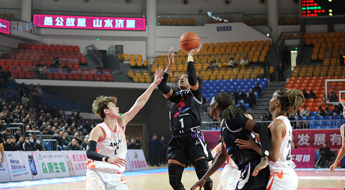 12月12日,济源篮球城,河南豫光金铅女篮1号队员奥德赛·西姆斯突破上篮。 当日,在2024—2025赛季中国女子篮球联赛(WCBA)常规比赛中,河南豫光金铅女篮83∶80战胜合肥文旅女篮,取得主场五连胜。