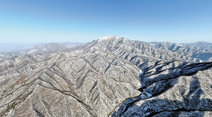 12月13日在河南省济源市拍摄的王屋山雪后景观(无人机照片)。 (段二平 摄)