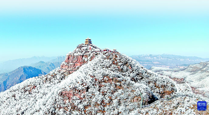 12月13日在河南省济源市拍摄的王屋山雪后景观(无人机照片)。 新华社发(段二平 摄)